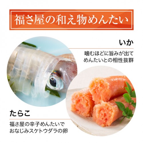 いかと辛子めんたいを和えた大人気の定番商品!いかのコリコリ食感と辛子めんたいが絡み合った逸品。