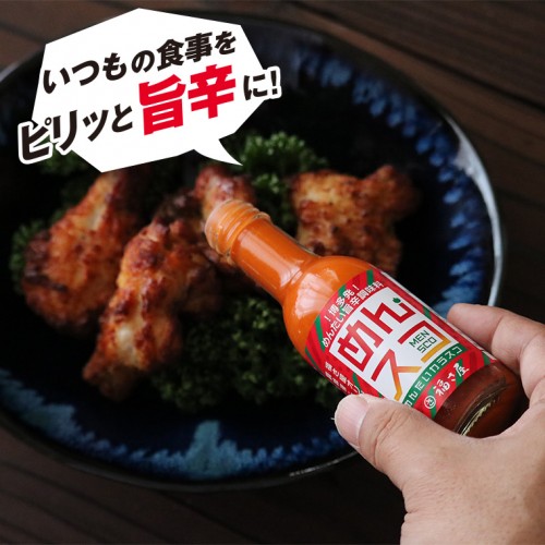 いつもの料理にかけるだけ!簡単に味変ができる、めんたい旨辛調味料。新たな博多土産です!唐揚げやピザや冷奴、坦々麺などの辛い料理にプラスしてさらに刺激的な辛さに!辛いのが好きな方へオススメです。