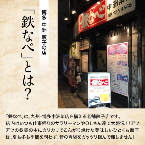 「鉄なべ」は、九州・博多中洲に店を構える老舗餃子店です。店内はいつも仕事帰りのサラリーマンやOLさん達で大盛況!!アツアツの鉄鍋の中にカリカリでこんがり焼けた美味しいひとくち餃子は、夏も冬も季節を問わず、皆の胃袋をガッツリ掴んで離しません!