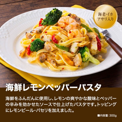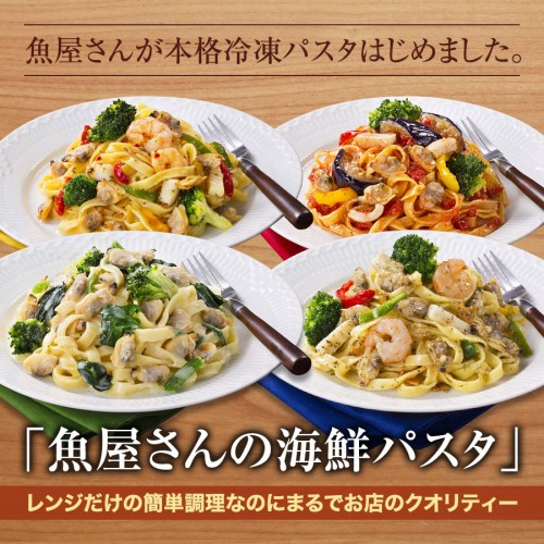 魚屋さんの海鮮パスタ4種と福さ屋の人気商品がたっぷり楽しめる豪華海鮮パスタセット!忙しい日でもレンジで簡単美味しい食事が楽しめる、本格冷凍パスタ。
