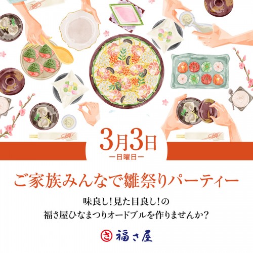 2024年3月3日(日)の雛祭りパーティーに、美味しく見た目も華やかなお料理が簡単に作れる福さ屋商品の詰め合わせ。