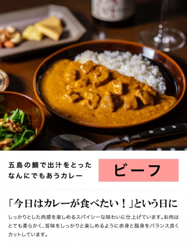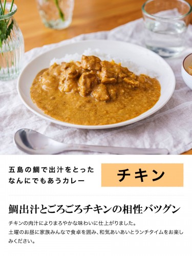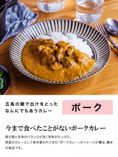 | 商品名 | ごと 五島の鯛で出汁をとったなんにでもあうカレー(プレーン・チキン・ビーフ・チーズ・ポーク) |
