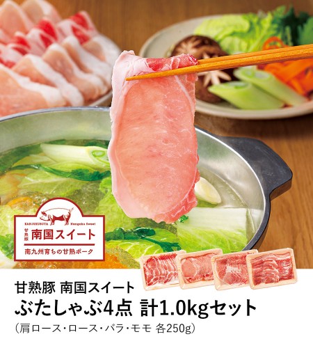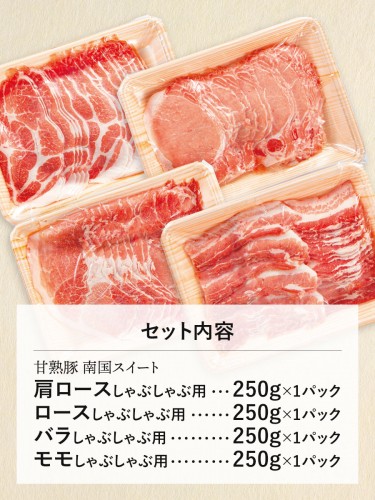 甘熟豚南国スイートぶたしゃぶ4点(肩ロース・ロース・バラ・モモ)計1.0kg(各250g)