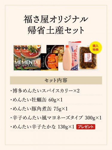 福さ屋オリジナル帰省土産セット(博多めんたいスパイスカリー×2、めんたい牡蠣缶60g×1、めんたい豚