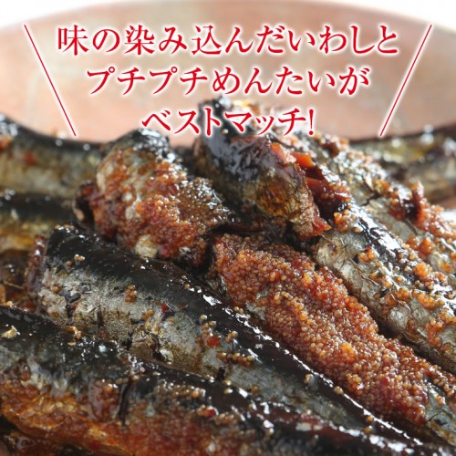 甘辛い濃い味つけで一口食べれば手が止まらない!プチプチめんたいと、味の染み込んだいわしの甘みがベストマッチ。しっとり柔らかで食べやすく、お子様からお年寄りまで幅広い世代の方におすすめです。